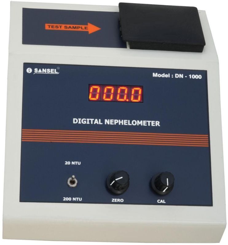 Clarity of water is extremely important in products destined for human consumption. Suspension free water is also considered necessary for industries manufacturing beverage, food products etc. Similarly, minimum limits of turbidity are required to be observed in drinking water & sewage disposals. SANSEL Digital Nephelometer Model DN 1000 are ideal instruments for measurement of suspensions. They consist of a light source focused on a test tube containing the sample solution under test. The light, reflected at right angle to the focused light by the suspension in the solution, is detected by the photo electric detector, amplified and displayed on a 3½ digit LED display.