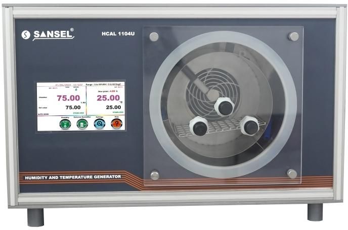 SANSEL Model HCAL 1104U – v2 Humidity and Temperature Generator is to perform a rapid & easy calibration of portable instruments, sensors, Transmitter and data logger of different manufacturers. Solid state Heating & Cooling technology with high performance humidification system, generate precision chamber stability & uniformity gradient range from 5 to 60°C(Temp.) / 5 to 95 % RH*(Humd.) / -25 to 40°C(Dew point)
